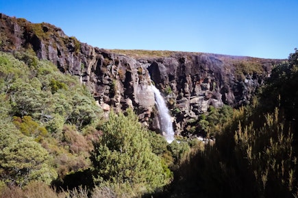 One of Tongariro National Park’s best short walks, this easy loop is jam-packed with fascinating natural sights including Taranaki Falls themselves which tumble 20 metres into a boulder-ringed pool. The track is in two parts – an upper and lower – which form a loop with the falls around the halfway mark. The lower track passes through tussock, alpine shrublands, and beech forest where you may see cute native birds. After a while, it meets the pretty Wairere Stream and climbs past Cascade Falls before Taranaki Falls come into view. The falls tumble over an ancient lava flow formed by the Ruapehu eruption of 15,000 years ago. Begins 100 metres below Whakapapa Visitor Centre at Ngauruhoe Place.